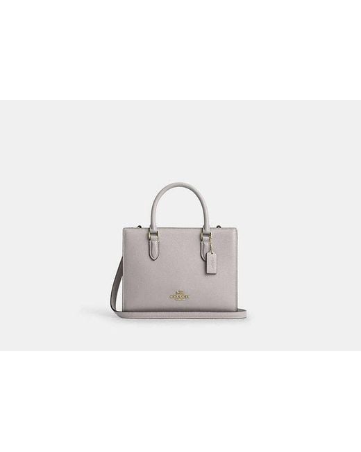 Refined pebble leather Inside zip and multifunction pockets Zip-top closure fabric lining Handles with 3 3/4 drop Detachable strap with 22 1/2 drop for shoulder or crossbody wear Four protective feet at base 9 3/4 (L) x 7 1/2 (H) x 4 1/2 (W) Style No. CY668 Coach Outlet Maggie Small Tote Bag - Gray, Size: Medium Color: black