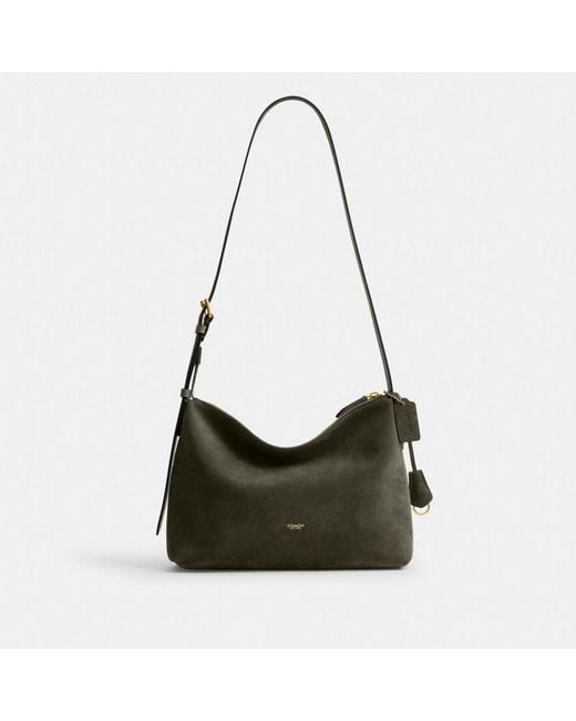 Our Mott is a sleek minimalist silhouette-with a distinctly New York attitude. A slouchy messenger bag with a secure zip closure the utilitarian style is crafted of luxuriously soft suede. Featuring room for daily essentials and an inside snap pocket for easy organization the compact 33 is finished with an adjustable strap to wear on the shoulder or crossbody. Coach Mott Messenger Bag 33 - Olive. Color: black