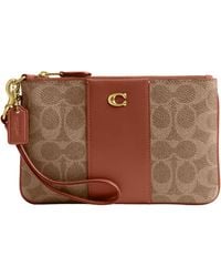 Go to COACHCellphone/pen/multi-function pocket; inside zip pocket; ring to clip an accessory or key ring; back zip pocket; drawstring and clip-front closure; signature jacquard fabric with leather trim fabric lining; 8 1/2“ top handle; 32