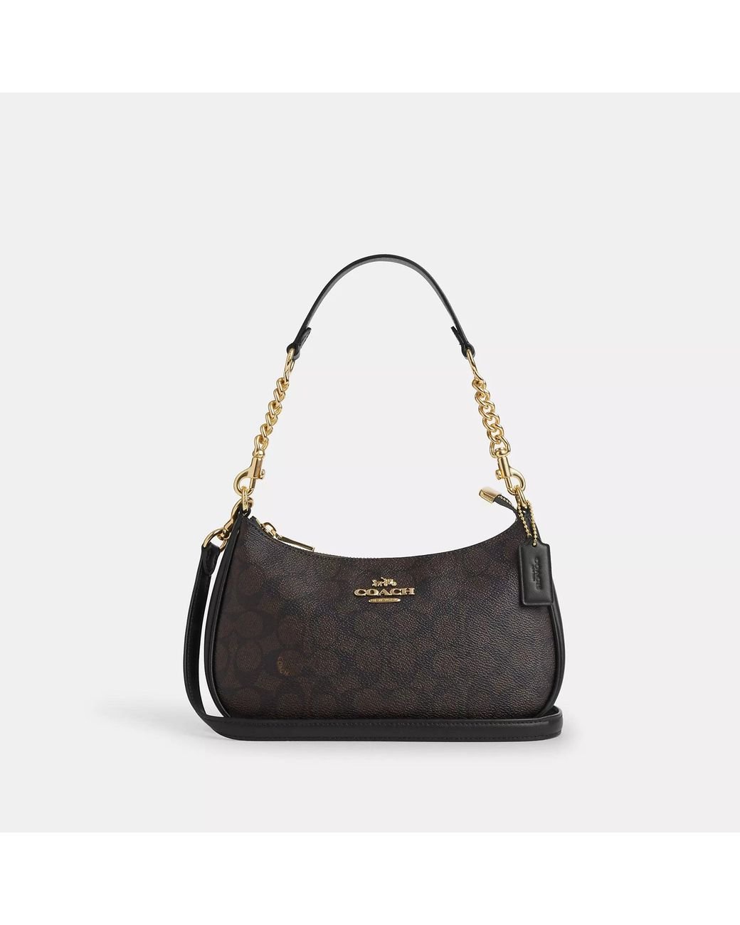 Signature coated canvas Inside multifunction pocket Zip-top closure fabric lining Detachable handle with 8 1/2 drop Detachable strap with 22 3/4 drop for shoulder or crossbody wear 9 1/2 (L) x 6 (H) x 3 (W) Style No. CV933 Coach Outlet Teri Shoulder Bag In Signature Canvas - White, Size - Medium Color: black