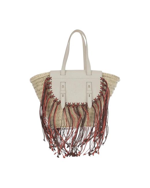 Cuba Lab Tropicana Tote Bag pairs handcrafted straw and leather details with a roomy open-top design. Its adjustable top handles and colorful appliqué make it a practical, stylish choice for everyday errands and weekend outings. Key attributes: Multicolor | Off white | Leather | Adjustable top handles | Single main compartment | Detachable pouch | Open top | Paneled design with insert details | Multicolor appliqué fringe | Dimensions & fit: One size | Composition & care: Leather | Raffia (natural palm leaves) | Cotton Color: multicolor