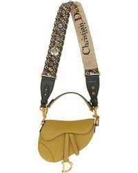 Go to FWRDDior Saddle Bag in Black Calfskin leather exterior with gold-tone hardware and suede lining. Made in Italy. Foldover flap closure. One main compartment. One exterior flat pocket. Original removable strap included. Measures approx