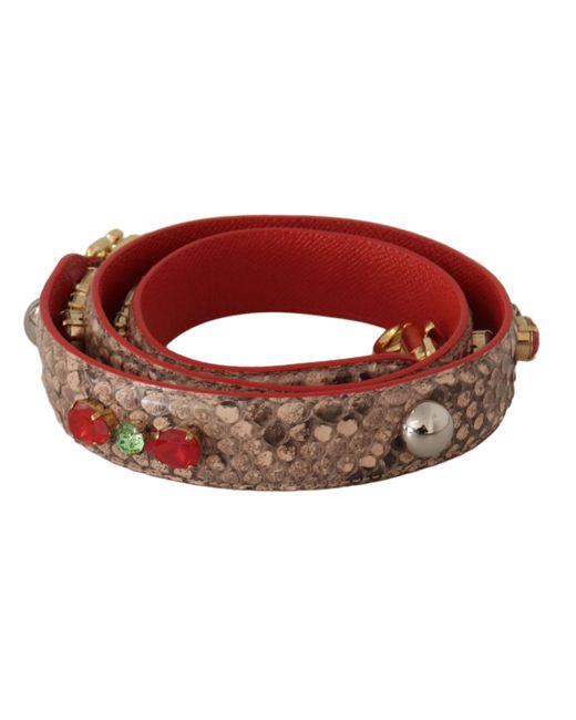 Women's Red Python Leather Crystals Shoulder Strap