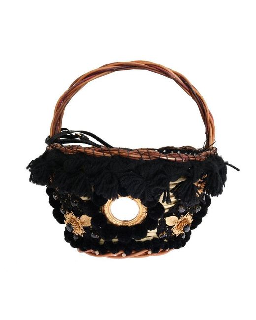Women's Black Chic & Straw Snakeskin Bucket Bag
