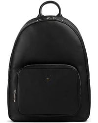 Go to FARFETCHcoffee brown leather grained texture two padded adjustable shoulder straps single top handle front zip-fastening pocket padded panels to the rear metal feet main compartment multiple internal slip pockets internal zip-fastening pocket internal