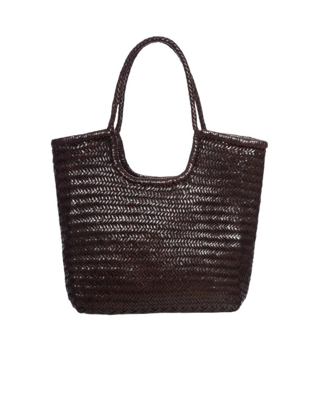 Big Santa Croce Interwoven Leather Tote Bag - Black