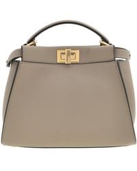 Go to 24S - LVMH GroupeIconic Peekaboo Essentially bag made of light gray leather and embellished with the classic twist lock on both sides. Featuring a pink leather lining with two compartments separated by a stiff partition, an