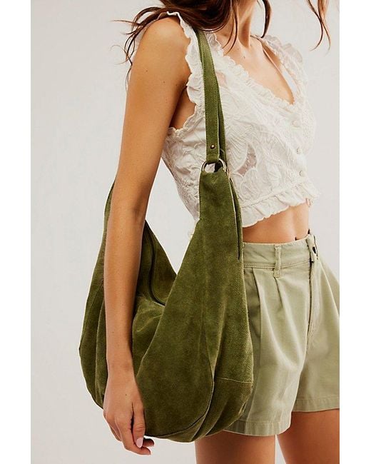 Effortlessly functional, this tote bag is featured in a slouchy hobo style with two elongated shoulder straps, all in soft suede fabrication with zipper closure for the perfect go-to bag. * Fully lined * Zipper closure * Fixed straps Roma Suede Tote Bag by Free People in Olive Moss