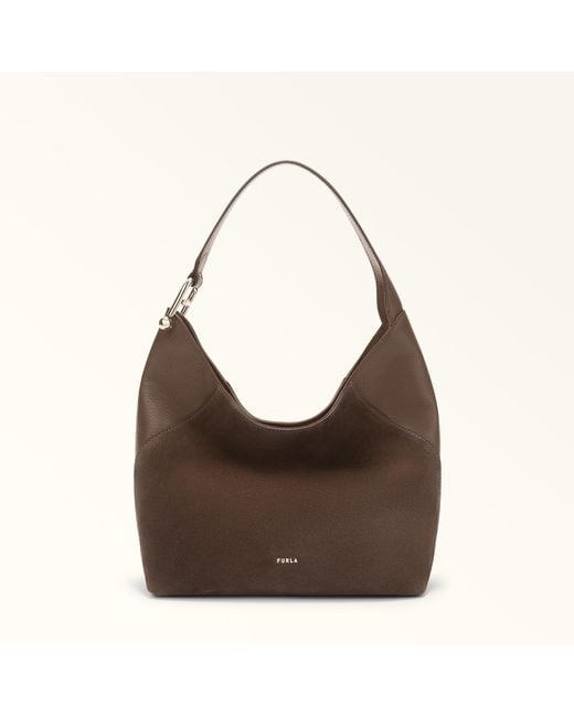 - Lara Shoulder Bag Toni Espresso Suede + Grained Calf Leather