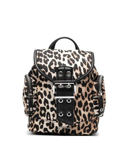 Brown leopard print side pockets top buckle adjustable straps drawstring Color: black