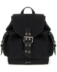 Go to SSENSEGRS-certified recycled nylon twill backpack in tan and black. · Printed leopard pattern and leather trim throughout · Padded carry handle · Adjustable padded shoulder straps · Magnetic press-stud flap with pin-buckle hardware