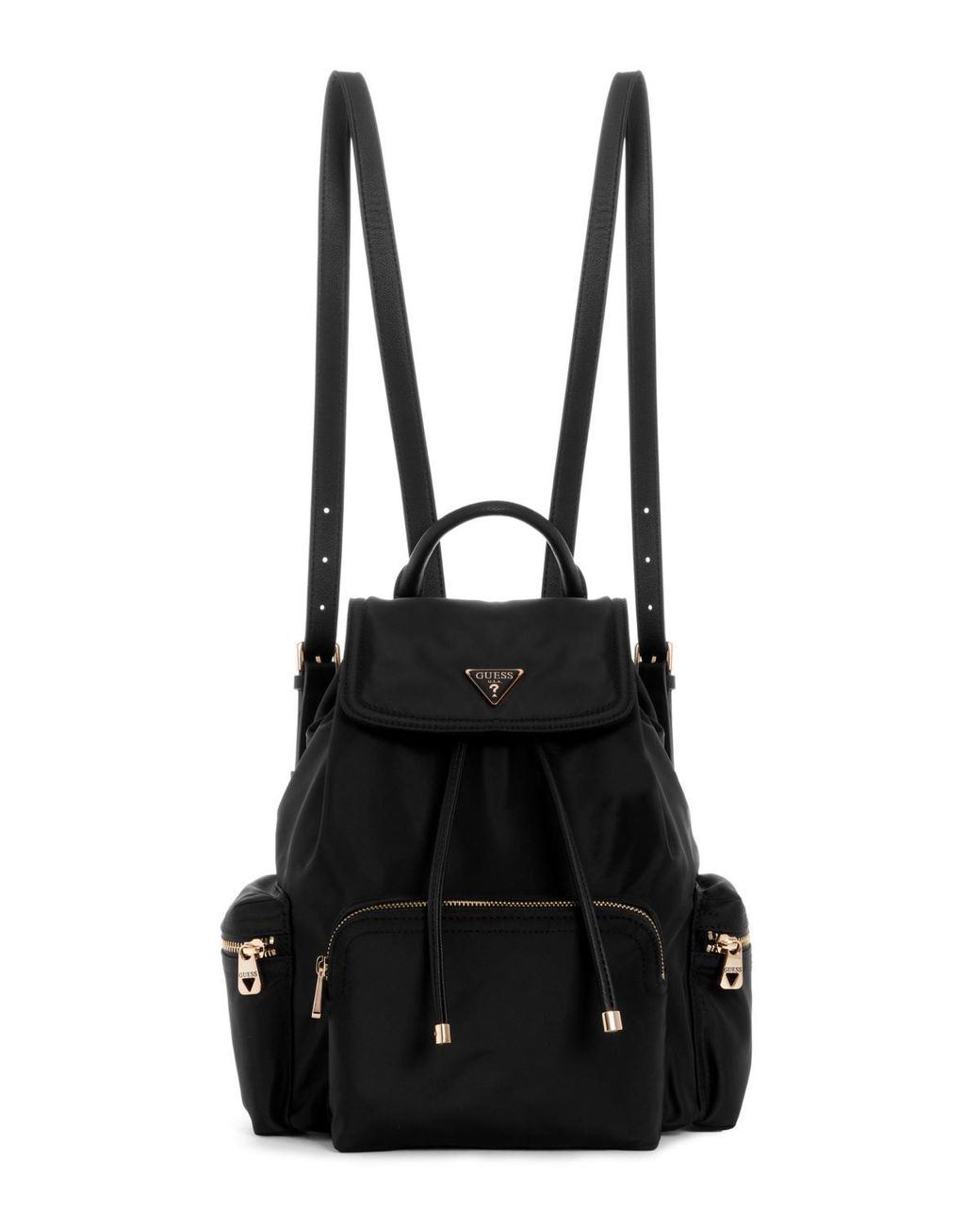 Chic, structured, and ready for anything. The Gemma Backpack brings a modern edge to a classic shape with smooth eco-nylon, thoughtful pockets, and gleaming gold hardware. Material, lining and trim: 100% polyester. Color: black