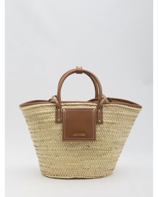 Beach basket bag in hand-woven raffia with brown leather details, featuring an adjustable shoulder strap, front pocket with flap, top handle, hook closure, metal logo lettering on the front and gold-tone metal hardware.SpecificationValueSeasonSS26Composition100% PALM LEAVES AND LEATHERColorBROWNColor Code811Made InMOROCCOISOMADepartmentWomenSectionBAGSSubsectionSHOPPING BAGSSize InformationONE SIZESize CodeOS Color: multicolor