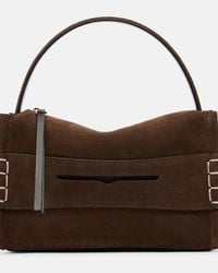 Go to ItalistCategory: Handbags Item: Small Moccasin Bag Brand: JW Anderson Color: Brown Details: Moccasin style, removable shoulder strap, suede Pockets: One interior card holder SIZE & FIT Width: 22 cm Height: 15 cm Depth: 8 cm