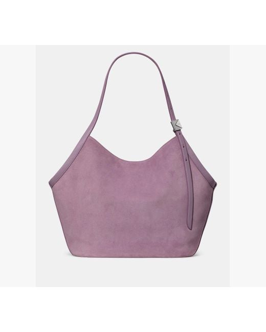 Perennially chic with luxe finishing touches our Deco collection features elevated staples for both everyday and special occasions. Our newest addition-a sophisticated tote in a flared tulip shape-is made from soft suede and detailed with our Art Deco-inspired K hardware. Kate Spade Deco Suede Tulip Tote, Market Purple Color: purple