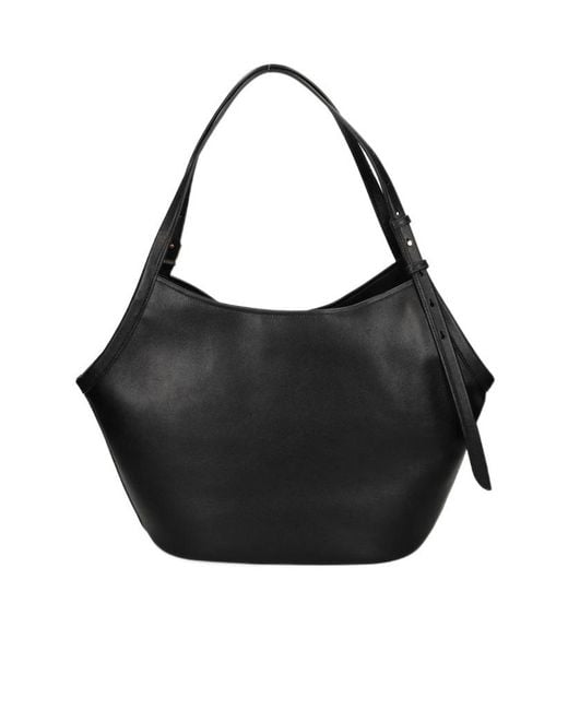 Deco Large Fine Grain Leather Tulip Tote Bag - Black