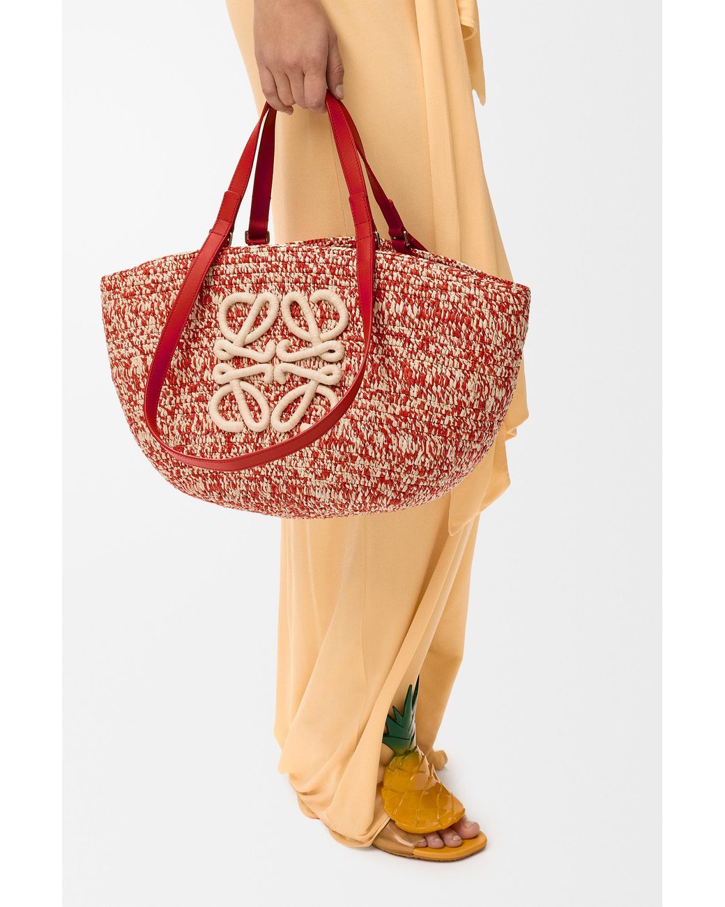 The Eclipse basket stands out with a sleek design and 3D Anagram signature. Supple and body friendly, it features an innovative handle system for versatile carry options. This medium version features a colorful pattern created by a mix of solid and mélange raffia. Made in Spain using raffia leaves that have been cultivated, harvested, sun-dried and handwoven by artisans in Madagascar. *Shoulder or hand carry *Unlined *Embroidered Anagram Color: red