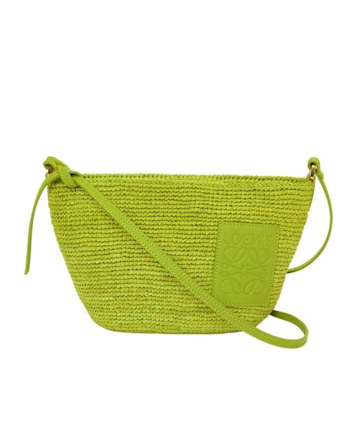The Slit pochette is a compact everyday bag with a body in soft handwoven raffia and calfskin details Crossbody or shoulder carry Zip closure with calfskin pull Customisable with strap and personalised charms Embossed LOEWE Anagram calfskin patch Details Color Meadow Green Metallic color Gold Main material Raffia Calf Strap length 111 cm Weight 0 32 kg Height cm 17 Width cm 27 Depth cm 11 Height inch 6 7 Width inch 10 6 Depth inch 4 3 Model ID A689W10X06 CIL 0011052016 Made in Madagascar Color: yellow
