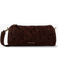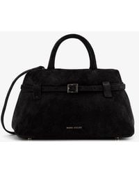 Go to FARFETCHGreen leather and suede micro Bold crossbody bag from Manu Atelier featuring a top handle, a detachable shoulder strap, a foldover top with clasp closure, an internal zipped pocket and a silver-tone logo plaque. Material:Suede/Leather. Color: green