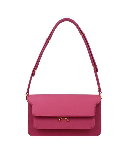 Description:The product with MPN SBMP0121U0LV520Z646C and code F85845 leather in fuchsia is a shoulder bags designed by Marni. It has features like adjustable handle, divider inner pocket, side logo. Color: pink