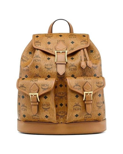 Visetos monogram canvas drawstring backpack with buckle hardware embellishments and natural leather trim Color: metallic