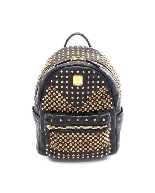 Brand Name - MCM; Condition - Good; Category - Bag; SubCategory - Backpack; Product Name - MCM Visetos Studded Backpack Black; Model Number - MMK5SVE73BK001; Style - Ladies; Height (cm) - 32.5; Width (cm) - 13; Length (cm) - 27; Color - Black; Material - PVC coated canvas, leather; Measurments - width - 130 mm length - 270 mm height - 325 mm strap length - 0 mm handle drop - 0 mm Color: black