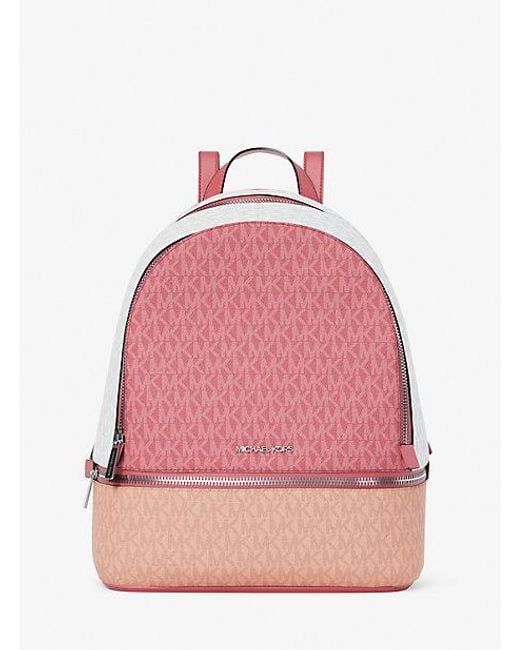 Women's Pink Rhea Medium Color-Block Signature Logo Backpack