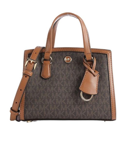 Women's Brown Michael Kors Logo Plaque Chain-Linked Tote Bag