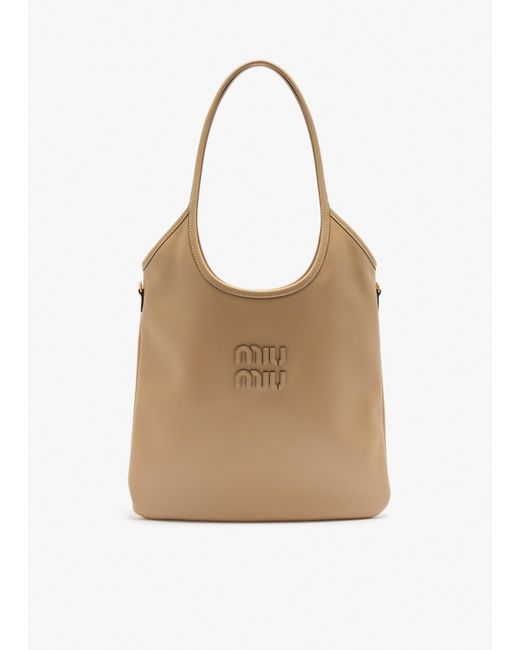Minimalist and refined, this bag is made from supple leather with an aged treatment and a tonal trim. It features the iconic logo on the exterior, double handles, and a roomy interior with a zipper pocket. Color: natural