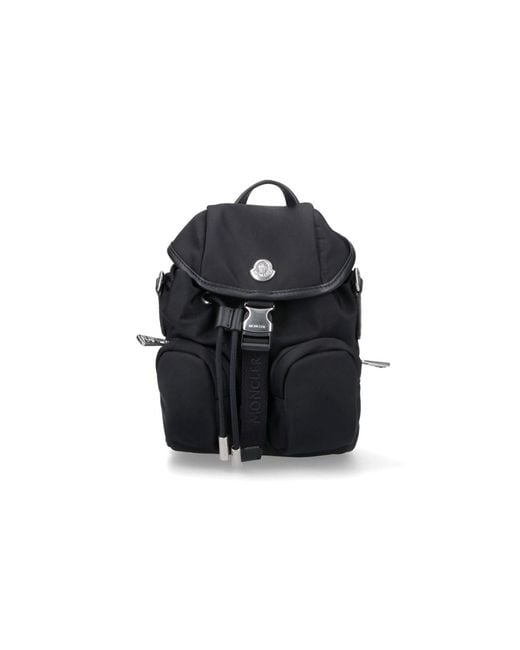 - Mini Backpack "Trick" Moncler in water-repellent black fabric - Top handle - Adjustable and removable shoulder strap - Buckle and drawstring closure - Silver metal logo patch on the front - Two zip pockets on the front - One flat internal pocket - One main internal compartment - details: 100% calf leather Color: black