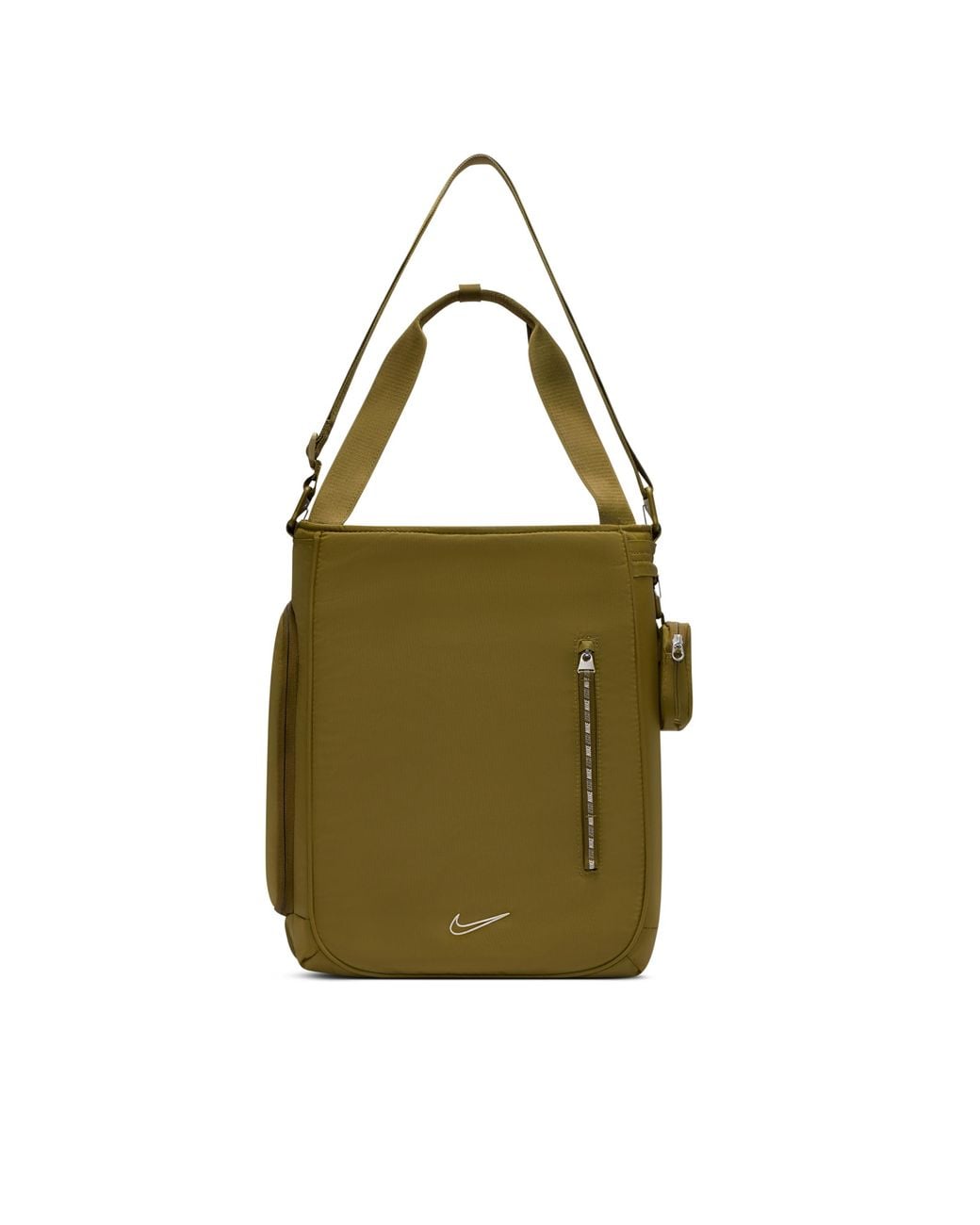 Fashion plus function for the modern commuter. This trendy tote's compartment has a plush-lined laptop sleeve to help keep your tech safe and organized. A zippered pocket on the front allows quick access to your small essentials, while a zippered, expandable pouch on one side fits most large water bottles for ease. Benefits:Removable shoulder strap and large carry handles let you mix up how you travel. Detachable mini bag allows you to keep small items organized. Internal sleeve fits up to a 15\ laptop. [] Product Details:12\W x 16\H x 6\D. Body:100% nylon. Lining:95% polyester/5% nylon. Imported. Spot clean. Style: FZ6130; Color: Olive Flak/Olive Flak/Cream II; Size: One Size; Gender: Unisex; Age Group: Adult | Nike Sportswear Commute Tote Bag (20L) in Brown, Size: One Size | FZ6130-368