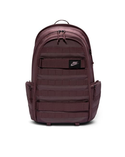 Meet the backpack made for the person who needs to carry it all. Whether it's on a sunny day hike or hiking around campus, you have plenty of space to stay organized while also staying comfortable. Multiple zippered pockets complement the spacious main compartment, and both the back and straps are padded for long days on your feet. Benefits:Internal sleeve stores a laptop up to 15\. Padded shoulder straps are adjustable for a comfortable fit. Side pockets hold a water bottle or other small essentials. Zippered back pocket adds secure carrying space. Stabilizing chest strap distributes the weight of the backpack, helping you stay comfortable during extended wear. [] Product Details:Haul loop. 21âH x 13âW x 7âD. 100% polyester. Spot clean. Imported. Style: FD7544; Color: Tattoo/Black/Light Violet Ore; Size: One Size; Gender: Male; Age Group: Adult | Nike Sportswear RPM Backpack (26L) in Purple, Size: One Size | FD7544-502