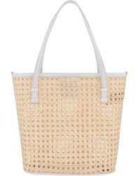 Go to Wolf & BadgerThe Lolita rattan tote bag blends natural craftsmanship with everyday practicality. Handwoven from durable rattan and paired with smooth leather handles, it offers a refined yet relaxed look. The interior is lined with