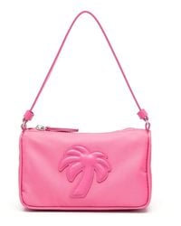 Go to JomashopPalm Angels Ladies Shoulder Bag. SKU: PWNA057F23FAB001_0310. Color: White. Palm Angels Canvas Shoulder Bag. Fabric 1: 100% Cotton Fabric 2: 100% Calf leather Fabric 3: 60% Cotton, 40% Polyamide.