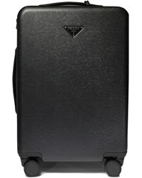 Go to BaltiniHighlights. black. leather. triangle logo. telescopic handle. single flat top handle. all-around zip fastening. main compartment. internal zip-fastening pocket. internal elasticated strap. combination lock. four wheels. Gender: Men. Material: 100%POLYCARBONATE-100%CALF. Color: Black. Made