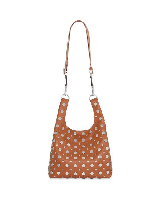 Studded hardware brightly shines against the faux-leather silhouette of a shopper tote boasting a roomy interior to suit your everyday needs. 14"H x 14"W x 4 1/2"D Magnetic frame closure<br type="_moz"> Removable, adjustable shoulder strap<br type="_moz"> Lined Synthetic Imported Color: brown