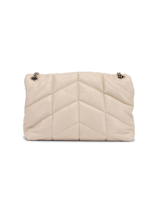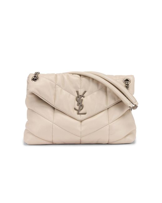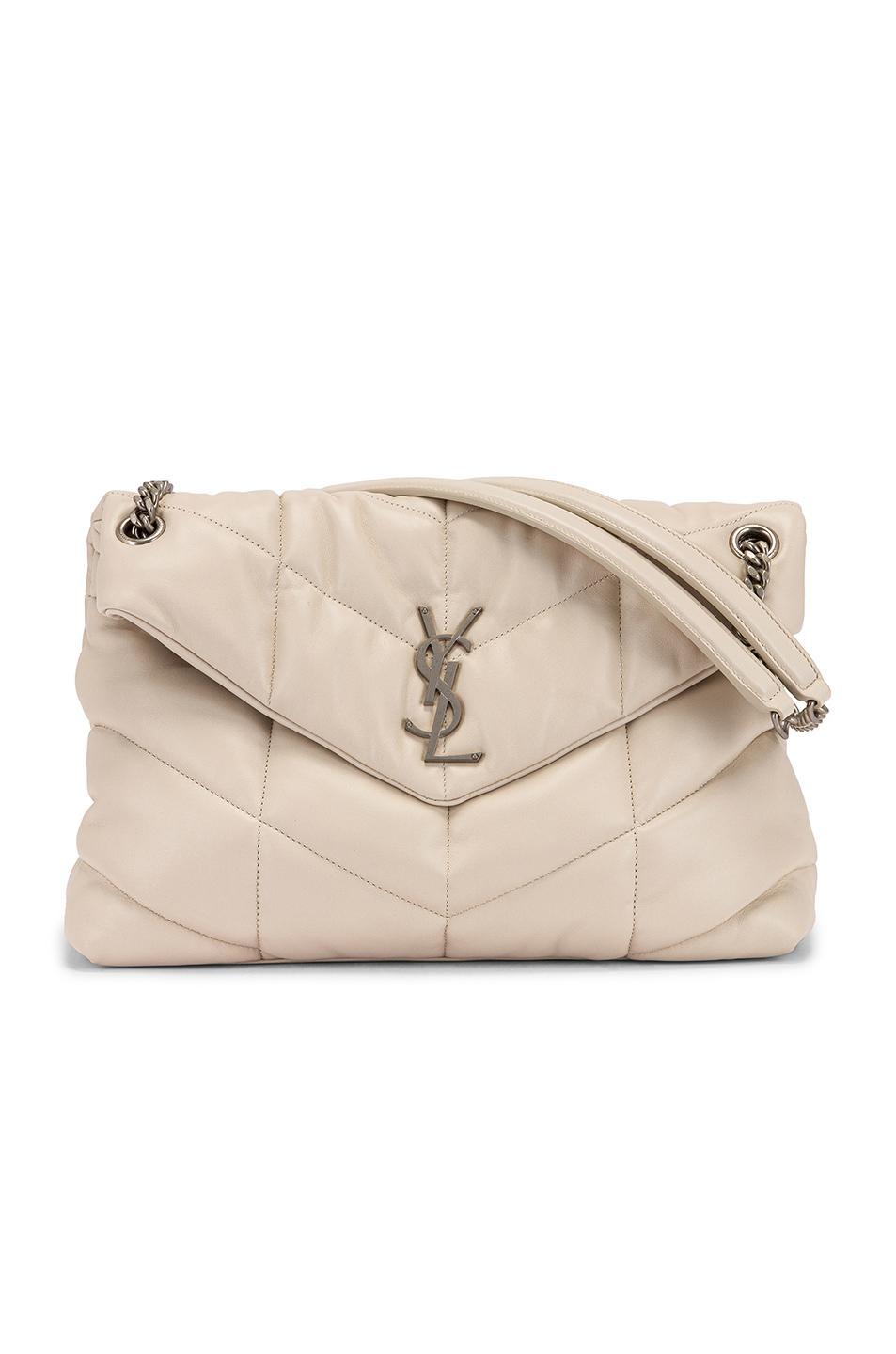 Saint laurent medium loulou monogramme bag in neutral,white matelasse leather with canvas lining and brushed silver-tone hardware. Made in italy. Measures approx 13w x 9h x 4d. Convertible shoulder strap measures approx 26 in length with a 10 drop or 42 in length with an 18 drop. Envelope fold-over flap top with magnetic button closure. Interior zip pocket. Interlocking logo detail at front. This shift represented a first critical step in the modernization of fashion and revolutionized the socio-cultural landscape. Yves saint laurent, under the creative direction of hedi slimane since march 2012, continues to position itself at the summit of the luxury universe. Today, saint laurent collections include women's and men's ready-to-wear, shoes, handbags, small leather goods, jewelry, scarves, ties and eyewear. Yves saint laurent is part of the kering group, a world leader in apparel and accessories which develops an ensemble of powerful luxury and sport & lifestyle brands.