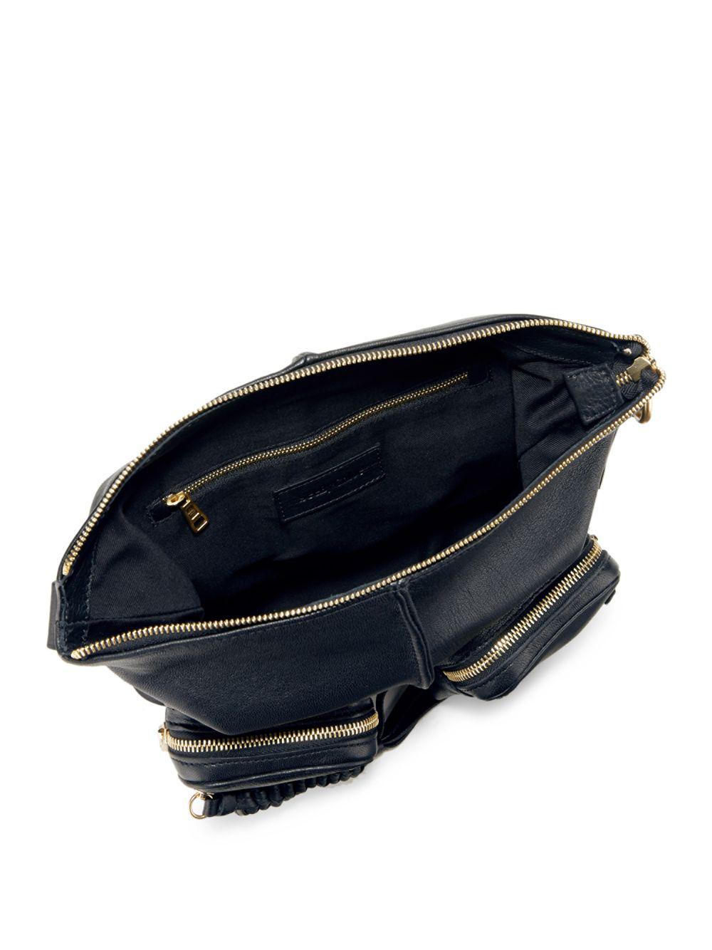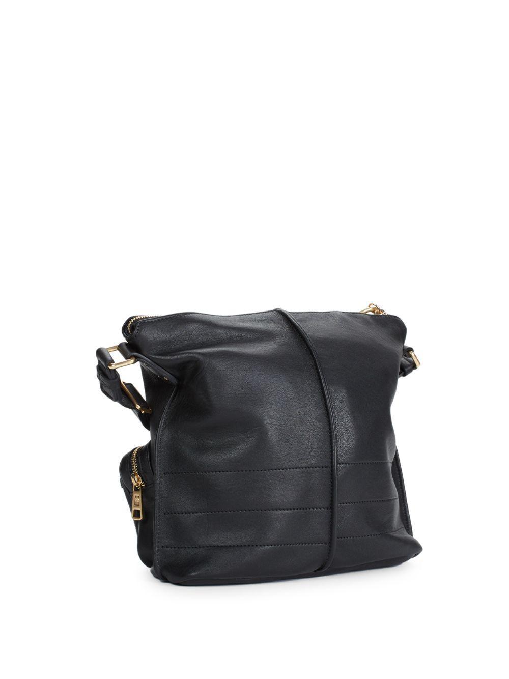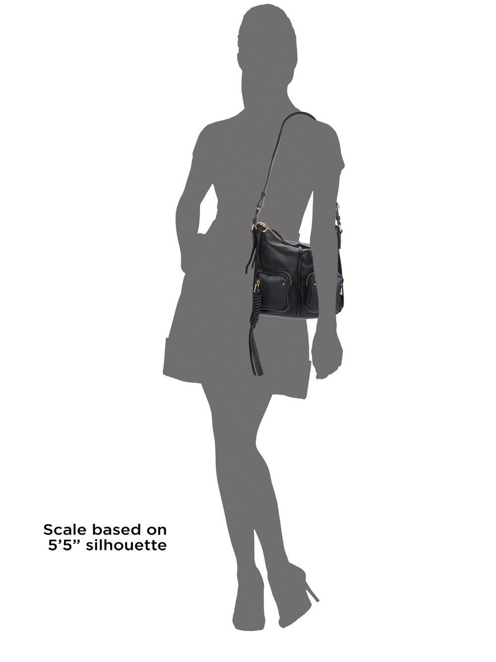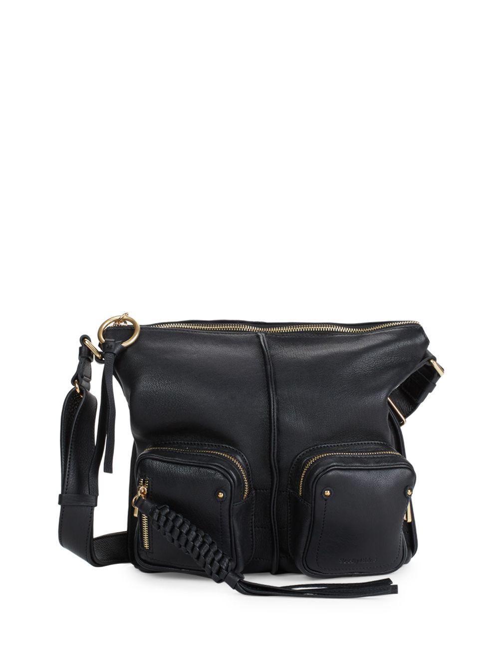 Spacious leather shoulder bag with braided pull detailing. Adjustable leather shoulder strap. Top zip closure. Goldtone hardware. Two exterior zip pockets. One interior zip pocket. Lined. Includes dust bag and authenticity card. 13"W x 12"H x 4"D. Leather. Color: black