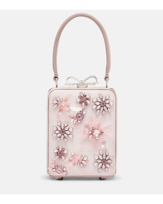 Women's Pink Micro Crystal-Embellished Floral Box Bag
