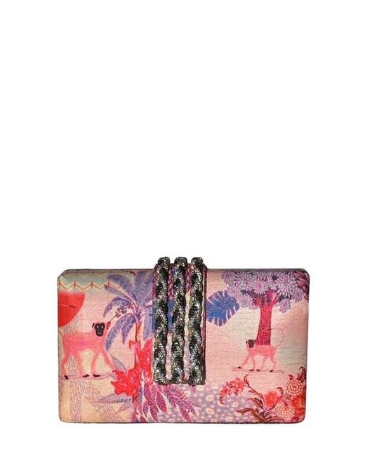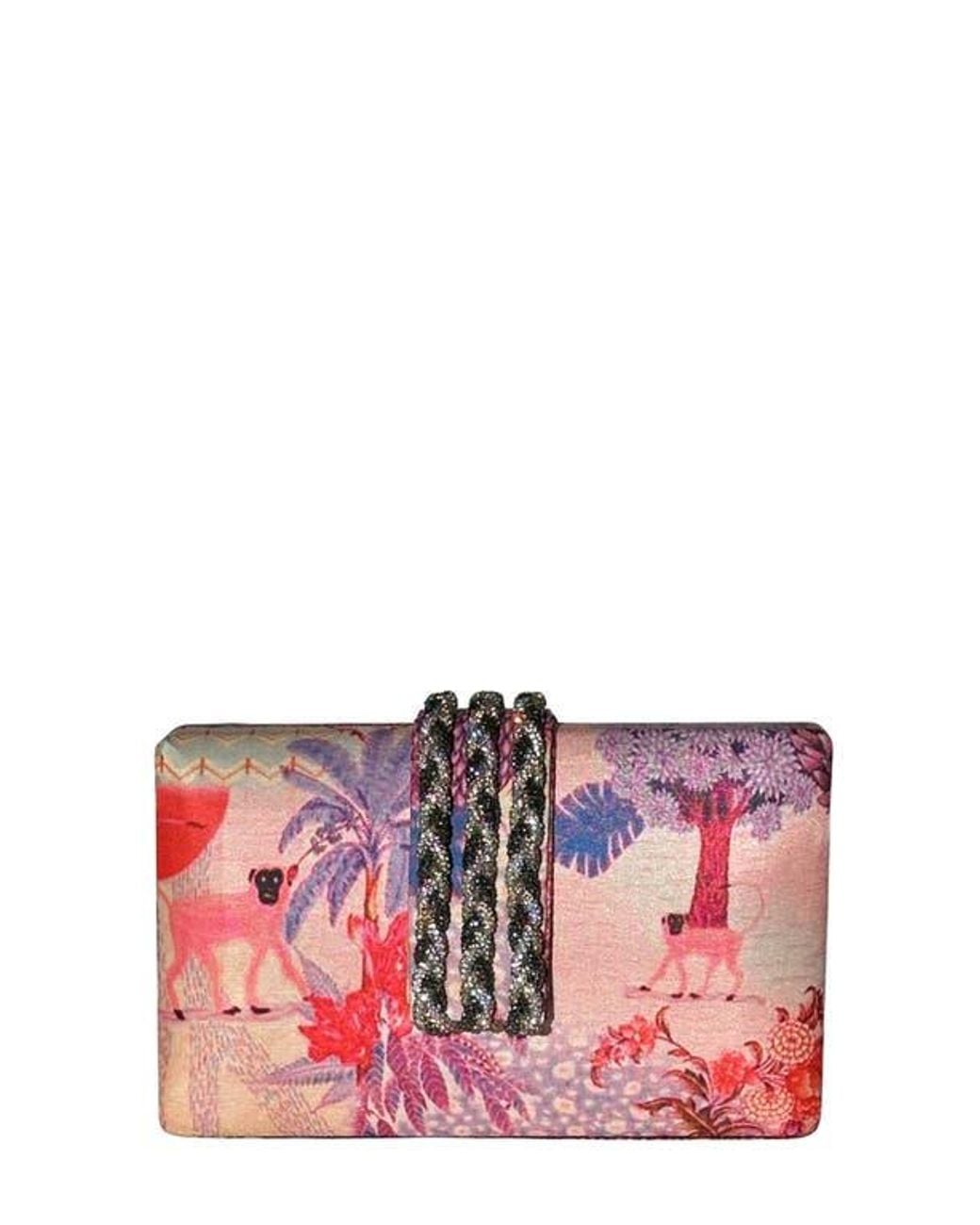 Women's Red Printed Braid Clutch