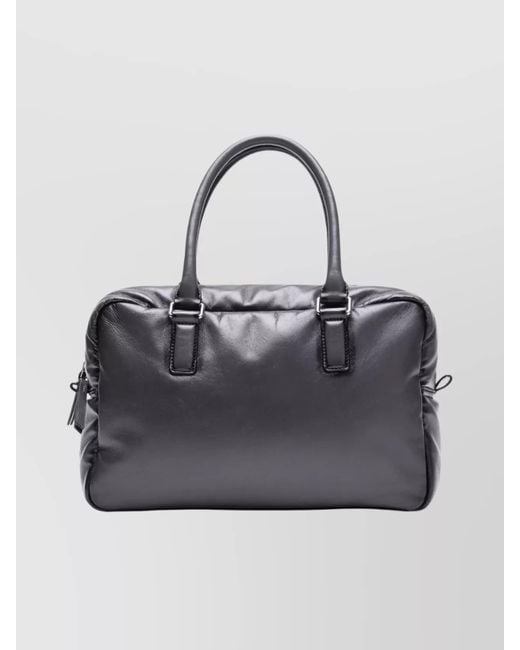 Women's Gray Bowling Bag Lamb Leather Shoulder Bag