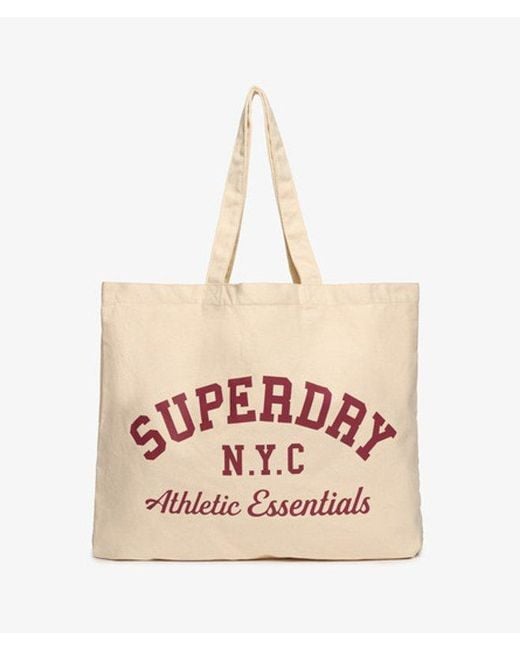 Designed to stay on trend and on the go. Our Superdry Tote is the best addition to your closet and accessories this season, basic enough to pair with everything but stylish enough to elevate your daily fits. Two straps Tote bag silhouette Large signature graphic print H 43cm X W 52cm X shoulder strap height 27cm. Color: natural