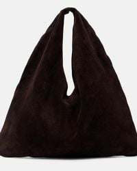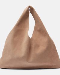 Go to AntonioliThis compact suede bag embodies quiet luxury through its unstructured silhouette and fluid draped handle. Finished with subtle embossed detailing, it reflects an effortless, timeless elegance rooted in refined craftsmanship.Caramel AnsSoft SuedeDraped top handleUnstructuredembossed logo detail Color: brown