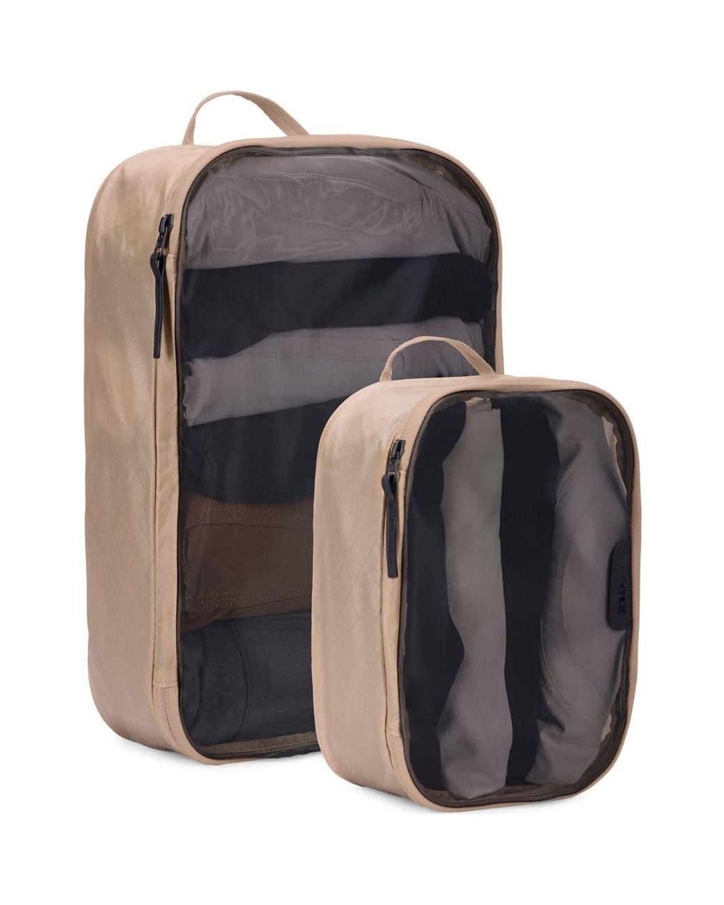 This packing cube set includes a medium and a small cube, sized to fit efficiently within most carry-on luggage and allows you to quickly identify and organize travel items. What it does: Keep your clothes and essentials neatly separated within your luggage, ensuring everything stays organized, contained and easy to locate throughout your journey.Additional features:- The soft, transparent mesh top allows for quick and easy identification of your packed items- Features smooth-action YKK zippers built to withstand the rigors of travel- Webbing handle allows you to easily grab and hang the cube while travelingIncludes: - Small packing cube: Perfectly sized for containing socks, underwear, T-shirts, and accessories.- Medium packing cube: Perfectly sized for containing organize shirts, pants and accessories.Sizing information: 0.33 lb.; 10 x 3.75 x 14. Color: gray