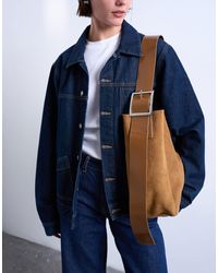 Go to ASOSAccessories by Topshop Adjustable crossbody strap Oversized buckle Can be worn on the shoulder or across the body Zip-top fastening. Polyester/Suede. Color: white