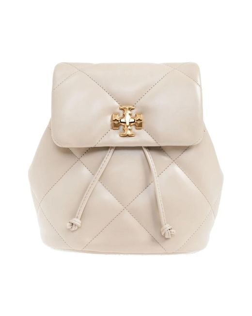 Tory Burch Diamond Quilt Mini Backpack pairs a compact quilted silhouette with gold-tone hardware and convertible straps for versatile, hands-free wear. Key attributes: White | Leather | Adjustable chain straps | Convertible to crossbody | Drawstring closure | Interior card pockets | Quilted design | Gold-tone hardware | Drawstring detail | Flap with turn-lock | Composition & care: Leather Color: natural