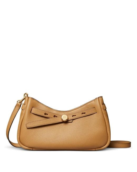 Brown grained finish adjustable detachable shoulder strap gold-tone hardware top zip fastening front strap logo detail Size: One Size. Gender: Female. Material:Calf Leather/Microfibre. Color: natural