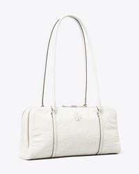 Go to Tory BurchSoft and lightweight, our new Marshmallow Satchel has a '90s-inspired shape. The double-zip silhouette carries a lot and keeps things organized. Carry it over the shoulder by its slim straps or hugged as
