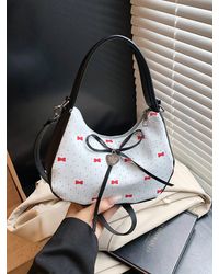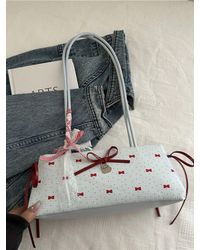 TRUEDAMES Women's Blue Printed Bow Shoulder Bag