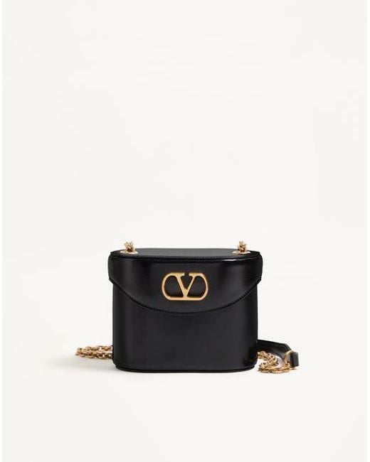 Designer Vain vanity bag in shiny calfskin with metallic VLogo Signature detail. The bag can be carried by hand using the handle or worn cross-body using the chain, both of which are detachable. - Hardware in antique gold tone finish - Magnetic closure with VLogo in antique brass finish - Nappa lining. Interior: slip pocket - Chain drop length: 55 cm / 21.7 in.; handle drop length: 12 cm / 4.7 in. - Dimensions: W16xH13xD8.5 cm / W6.3xH5.1xD3.3 in. - Made in Italy This product contains magnets. Please consider if this product will be worn within 15 cm from any implanted device. Any concerns please contact your healthcare professional. Color: white